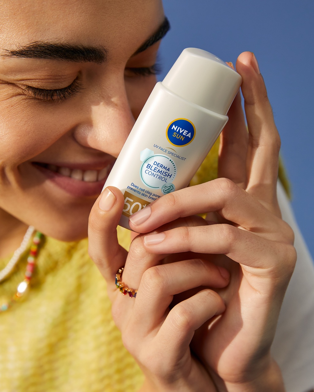 NIVEA Derma Skin Clear SPF 50+ Fluid gir bredspektret beskyttelse uten å tette porene. Den lette, ikke-fete formelen absorberes raskt og gir en behagelig, matt finish som kontrollerer overflødig olje og glans i opptil 8 timer. Ved å beskytte huden og holde porene klare, støtter den en glattere og sunnere utseende hud.