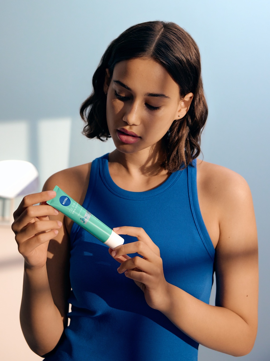 Bruk deretter NIVEA Derma Skin Clear Scrub, beriket med salisylsyre (BHA), havsalt og niacinamid. Den støtter hudens naturlige fornyelsesprosess, forfiner porene og reduserer hudormer og urenheter uten å tørke ut, for en klarere hudtone.