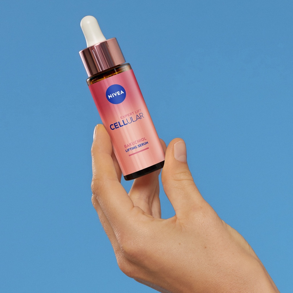 NIVEA Cellular Expert Lift 3-Zone Lifting Serum inneholder den høyeste konsentrasjonen av ren bakuchiol i et NIVEA-produkt. Det hjelper med å stimulere cellefornyelsen og støtter hudens egen kollagenproduksjon på bare 4 timer*.