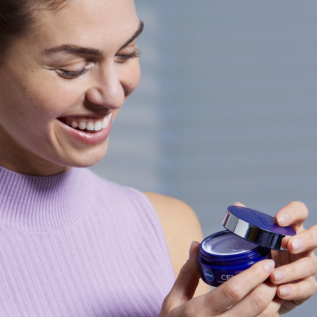 Etter serumet bidrar NIVEA Cellular Expert Lift Anti-Age Day Cream SPF30 til å bevare fuktigheten, samtidig som den hjelper til med å øke kollagenproduksjonen. De nøye utvalgte aktive ingrediensene inkluderer ren bakuchiol, som har vist å øke hudens egen kollagenproduksjon med +48 % på bare 4 timer*.