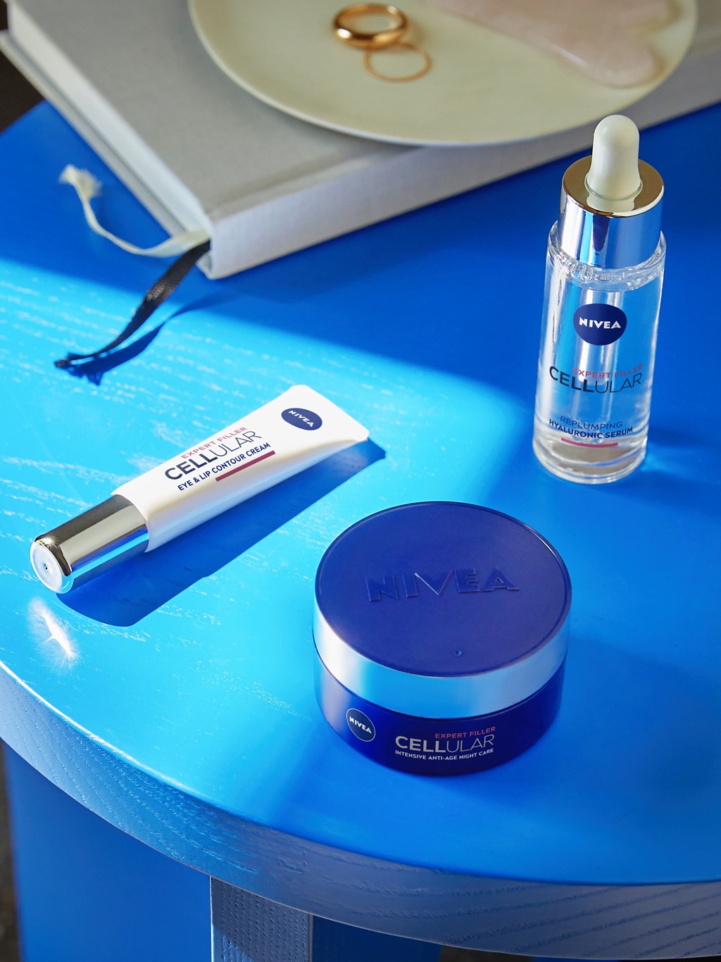Følgende hudpleierutine bruker produkter fra NIVEA Cellular Expert Filler-serien som inneholder hyaluronsyre. Ved å følge denne rutinen kan man redusere aldringstegn, samtidig som huden blir fastere og mer fyldig: