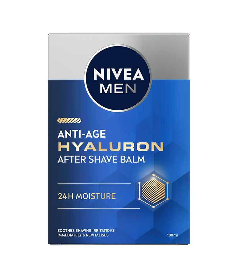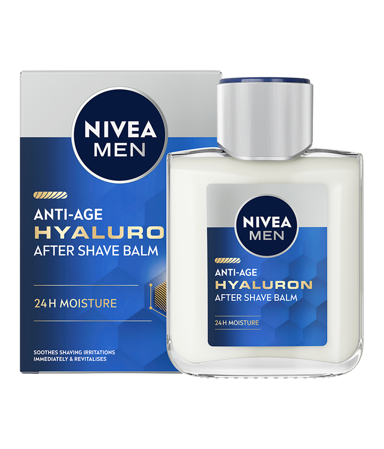 Frisk opp og fukt huden din etter barbering med NIVEA Anti-Age Hyaluron After Shave Balm. Lindre irritasjon samtidig som du nyter 24 timers fuktighet.