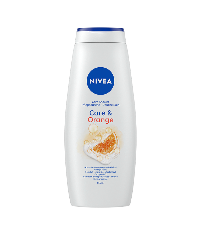 NIVEA Care & Orange Shower er en dusjkrem beriket med avokadoolje og en herlig duft av appelsin. Dusjsåpen inneholder naturlige oljer og vitamin C og E, og den gjør slik at huden føles merkbart myk, glatt og sunn i lang tid.
