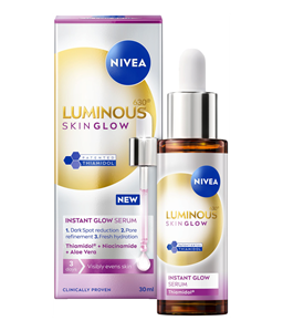Aqua, Butyl Methoxydibenzoylmethane, Bis-Ethylhexyloxyphenol Methoxyphenyl Triazine, Isopropyl Palmitate, Alcohol Denat., C12-15 Alkyl Benzoate, Distarch Phosphate, Glyceryl Stearate, Dibutyl Adipate, Ethylhexyl Triazone, Butylene Glycol Dicaprylate/Dicaprate, Phenylbenzimidazole Sulfonic Acid, Tapioca Starch, Cetyl Alcohol, Stearyl Alcohol, Cocoglycerides, Diethylamino Hydroxybenzoyl Hexyl Benzoate, Glycerin, Isobutylamido Thiazolyl Resorcinol, Sodium Hyaluronate, Tocopheryl Acetate, Sodium Stearoyl Glutamate, Ethylhexylglycerin, Caprylyl Glycol, Sodium Chloride, Xanthan Gum, Trisodium EDTA, Sodium Hydroxide, Phenoxyethanol, Sodium Sulfate, Parfum, CI 15985, CI 16035NIVEA Luminous630 Anti Dark-Spot Daily UV Fluid med SPF 50 er en lett dagkrem som inneholder den patenterte ingrediensen Thiamidol®, som effektivt arbeider med hudens egen prosess for å redusere og motvirke mørke flekker forårsaket av sol, aldring og hormonelle faktorer. Den har en dobbel virkning - den reduserer eksisterende pigmentering for å gjøre mørke flekker lysere og redusere størrelsen på dem, samtidig som den balanserer ny pigmentproduksjon for å forhindre at de oppstår igjen ved regelmessig bruk. Den oppgraderte og lette formelen er beriket med Thiamidol®, hyaluronsyre, vitamin E og UVA/UVB-filtre. Huden blir fuktet og glatt med en matterende effekt. Denne dagfluiden er skånsom mot huden, dermatologisk testet og egnet for alle hudtyper. For en jevnere og mer strålende hud.