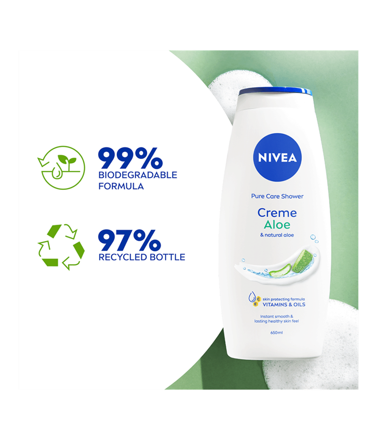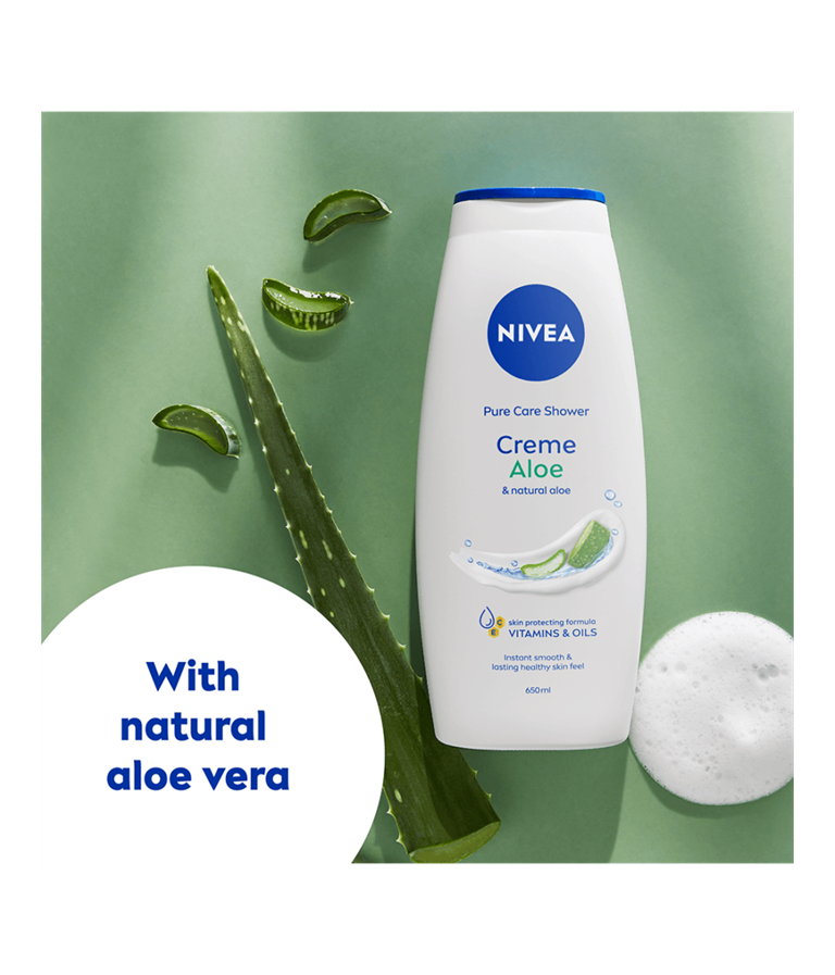 NIVEA Creme Aloe Shower er en dusjkrem med duft av aloe vera som gjør slik at huden føles myk og behagelig. Beriket med naturlige oljer og vitamin C og E, og den gjør slik at huden føles glatt og fuktighetspleiet hele dagen!
