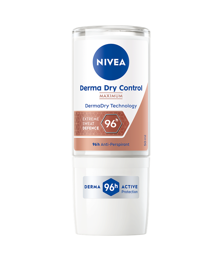 Føl at du har kontrollen med NIVEA Derma Dry Maximum Protection. Formelen med DermaDry-teknologi gir 96 timers beskyttelse mot svette og vond lukt, samtidig som den beskytter huden. Deodoranten er dermatologisk testet.