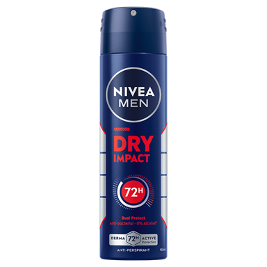 NIVEA Dry Impact Anti-Perspirant sikrer pålitelig 72 timers antiperspirantbeskyttelse som tar vare på huden din, alt med 0 % etanol. Formlene er dermatologisk testet for hudtoleranse. Våre antiperspiranter tilbyr Derma 72H aktiv beskyttelse.