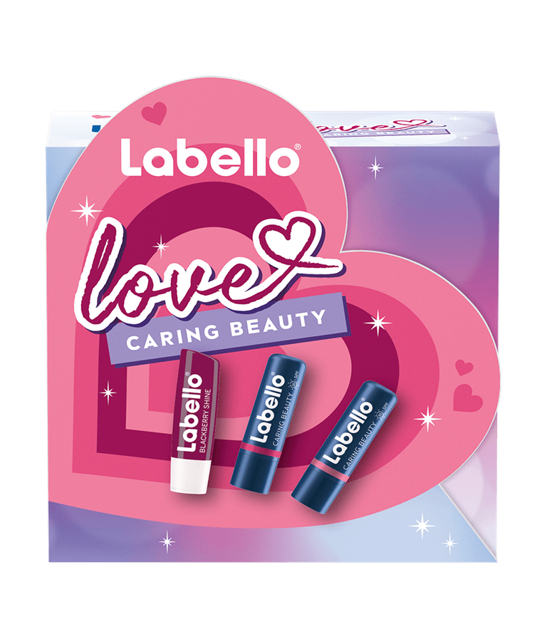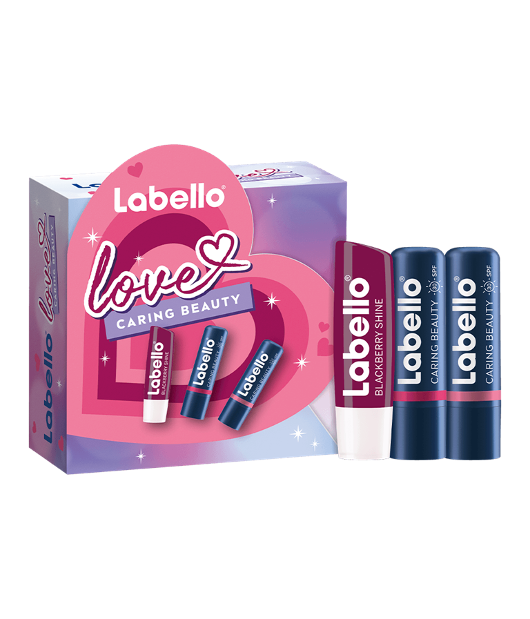 NIVEA Gavepakke Caring Beauty inneholder Labello Blackberry Shine Lip Balm for lekre lepper, Caring Beauty Rose-Nude for en naturlig glød, og Caring Beauty Pink for et livfullt preg. Perfekt for å forbedre din skjønnhetsrutine.
