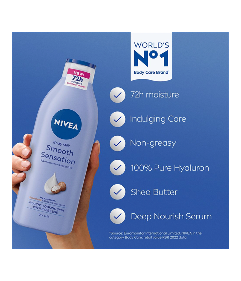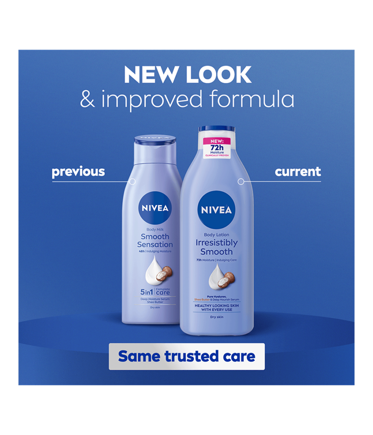 Oppdag Irresistibly Smooth Body Lotion med ny og forbedret formula og ny duft. Huden ser sunn ut etter hver påføring. Hudkremen tilfører næring i dybden i 72 timer, slik at huden føles silkemyk. Beriket med hyaluron, sheasmør og dyptvirkende nærende serum. Absorberes raskt og er ikke klebrig.