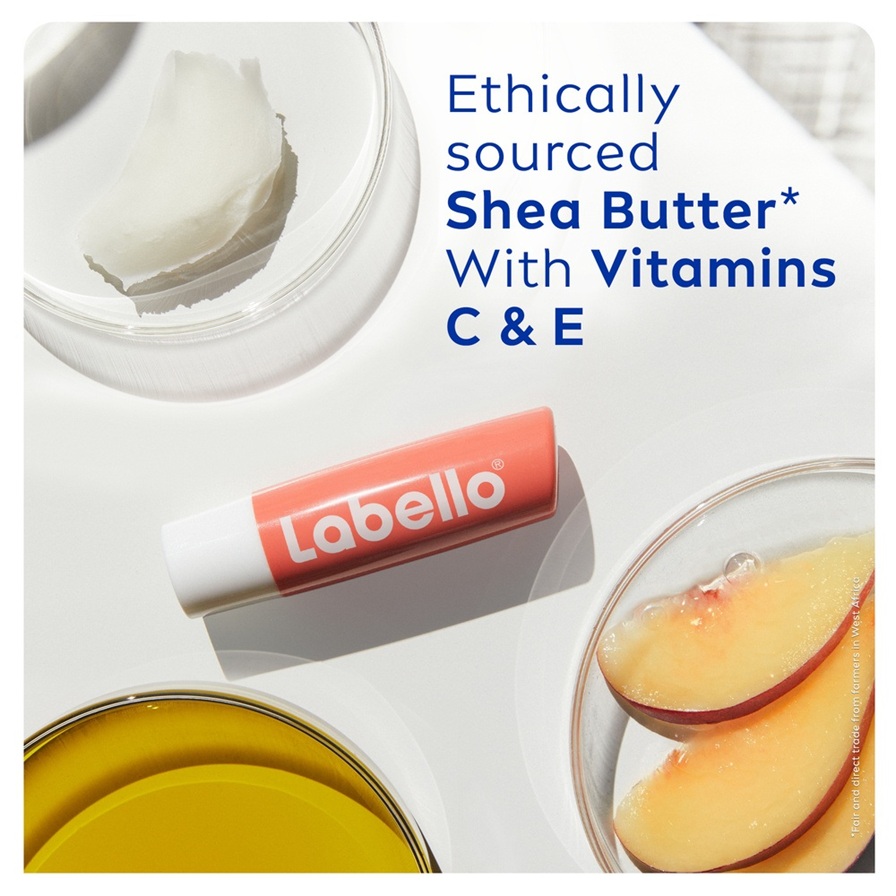 Ta vare på leppene dine med Labello Peach Shine Lip Balm som har en herlig ferskenduft og diskré korallrosa glans. Beriket med naturlige oljer.