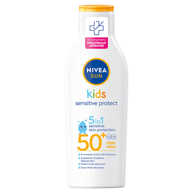 NIVEA SUN Sensitive Immediate Protect Soothing Spray er en solkrem som gir umiddelbar beskyttelse samtidig som den lindrer sensitiv hud med aloe vera. Formulaen er dessuten vannfast og parfymefri.