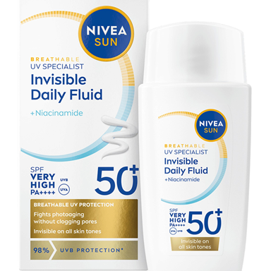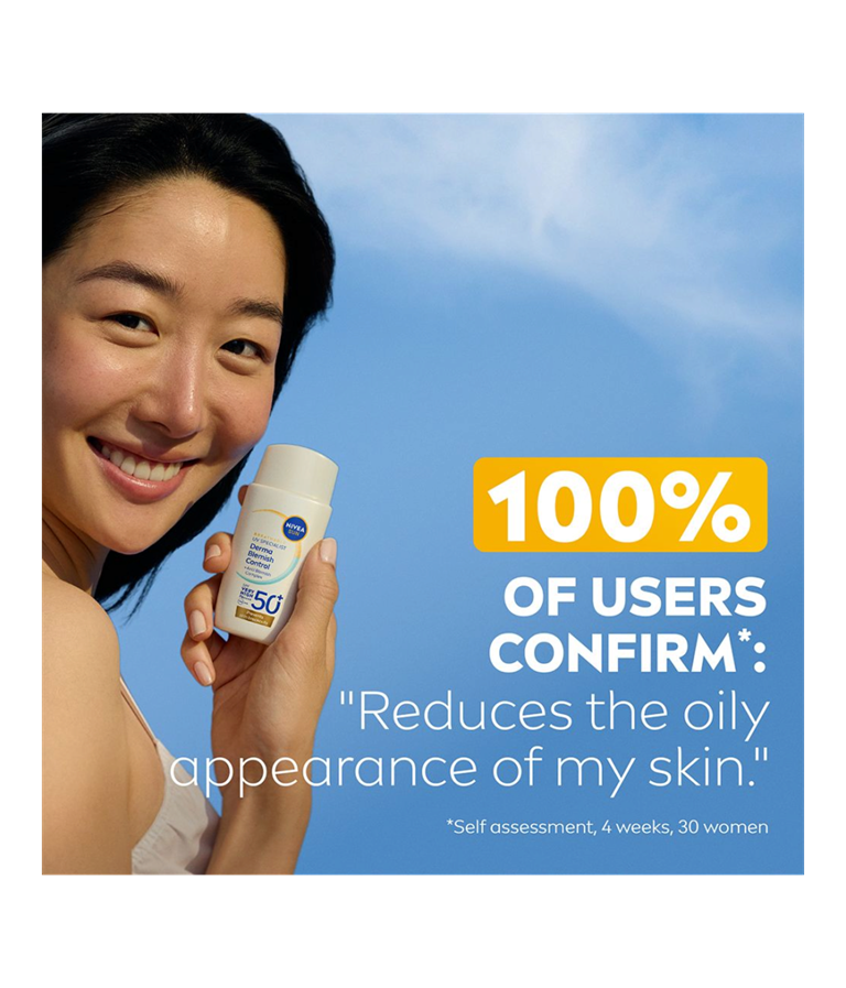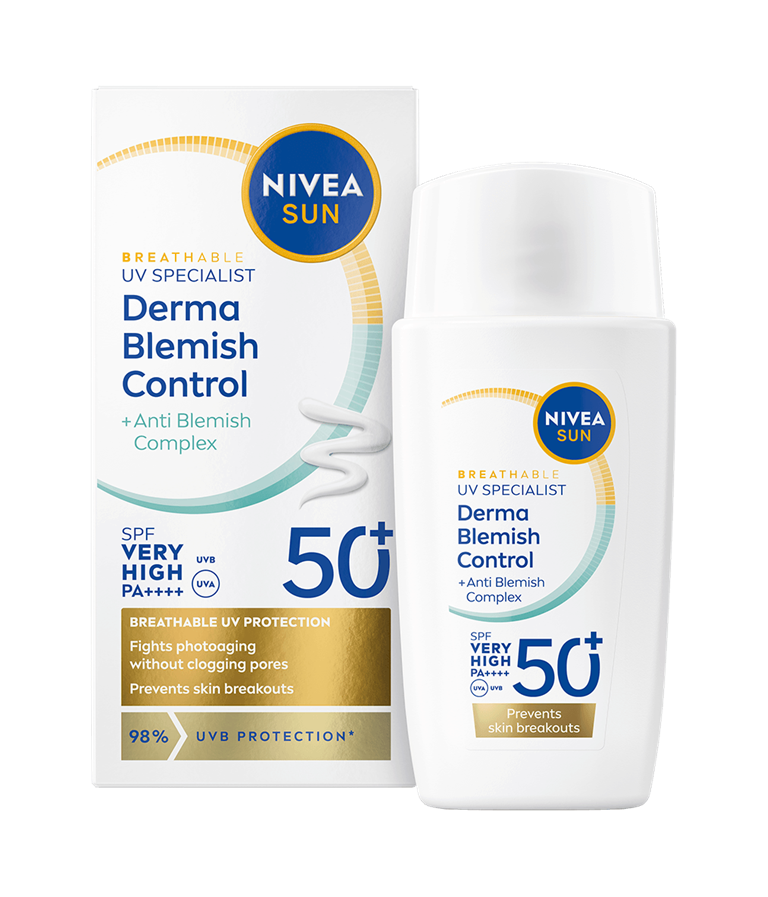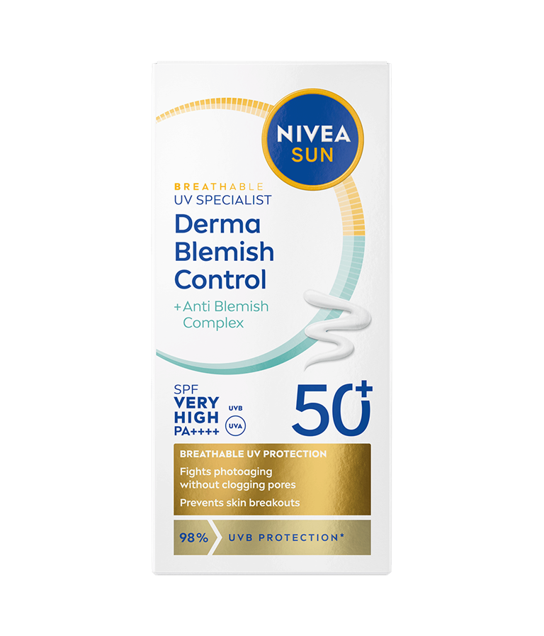 NIVEA UV Face Specialist Derma Skin Clear SPF 50+ er en solkrem for ansiktet med SPF 50+ som gir umiddelbar beskyttelse mot UV-stråler og motvirker fotoaldring. Den lette formelen er utviklet for ikke å tette porene samtidig som den aktivt forhindrer synligheten av urenheter.