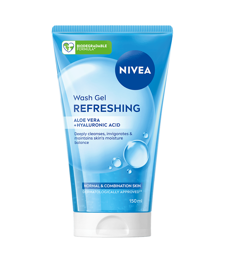 NIVEA Refreshing Wash Gel er en rensegel beriket med aloe vera og hyaluronsyre. Denne forfriskende rensegelen renser i dybden samtidig som den opprettholder hudens naturlige fuktighetsbalanse.
